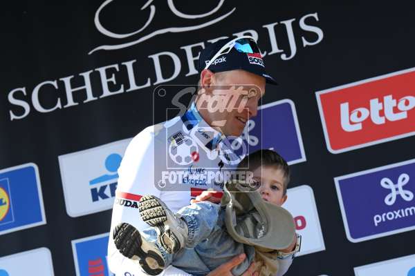 Tags:dopo gara, after race, apres la courseCampione Europeo, European Champion, Championne Europeen Cyclistes:Merlier, Tim Personnalité:Figlio Merlier, Tim équipes:2025, Soudal - Quick Step lieu:Schoten Course:Scheldeprijs